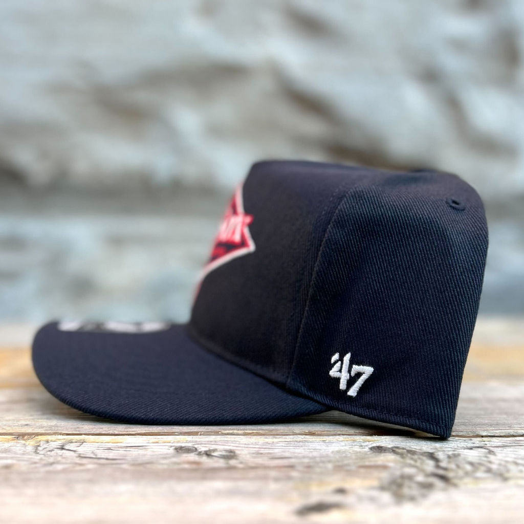 The '47 Hitch is a structured and curved adjustable with a raised embroidery logo on the front and a plastic snapback closure. Made from garment washed cotton twill.