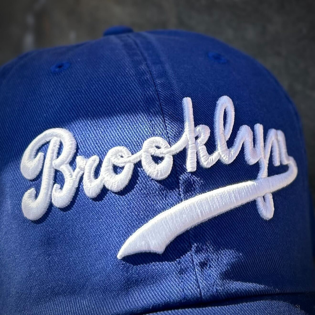 A classic dad cap for a classic team. The Brooklyn Dodgers script logo is embroidered on this royal blue cap.