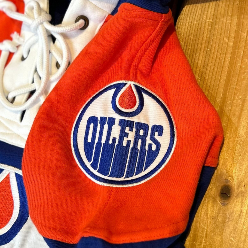Cheer on the home team in style in this Edmonton Oilers womens lacer jersey cropped hoodie!
