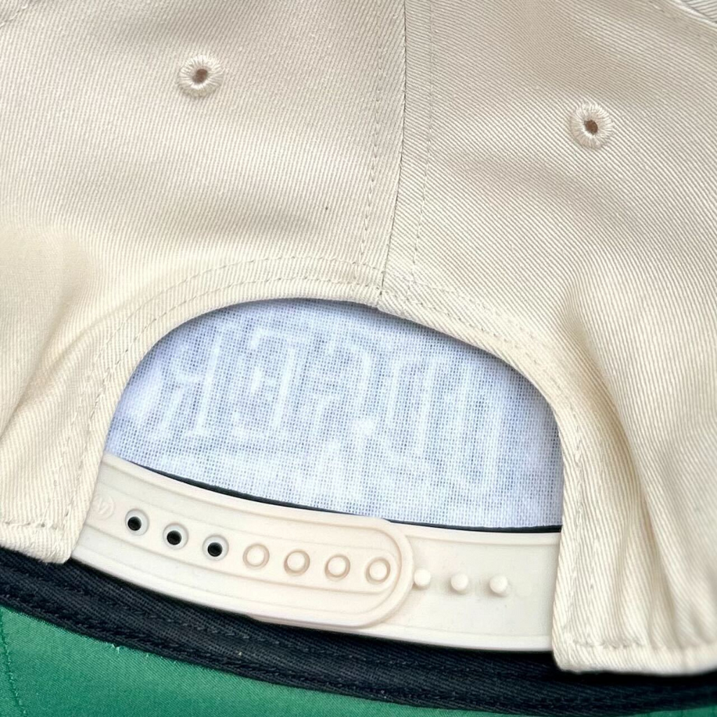 Meet the Diamond Hitch, a structured and curved adjustable with a raised embroidery logo on the front and a plastic snapback closure.