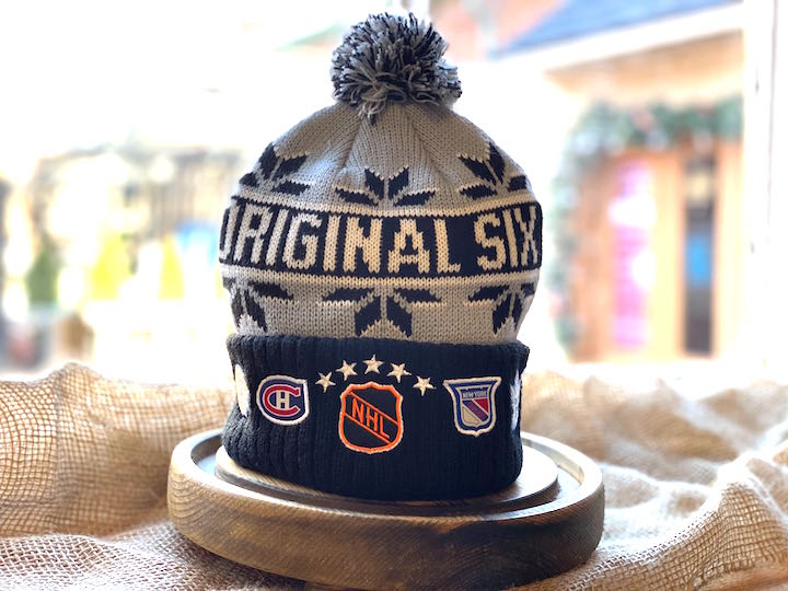 Keep your head warm and in vintage style all winter long with this awesome Original 6 pom toque! Featured embroidered patches with the logos of all six original NHL franchises around the cuff and "ORIGINAL SIX" script around the circumference.