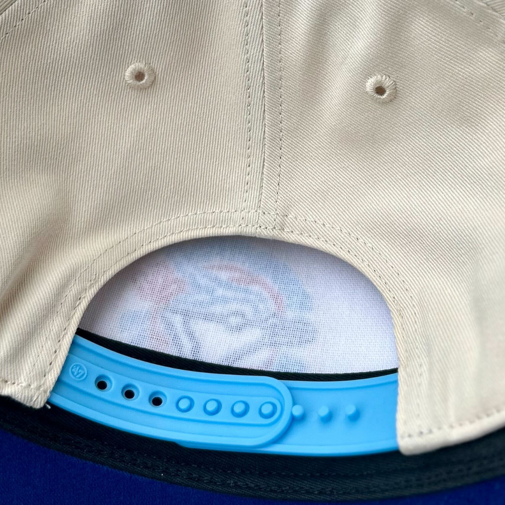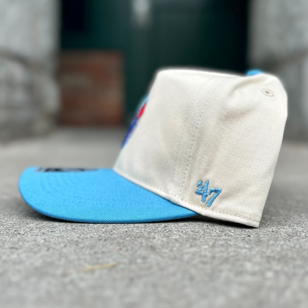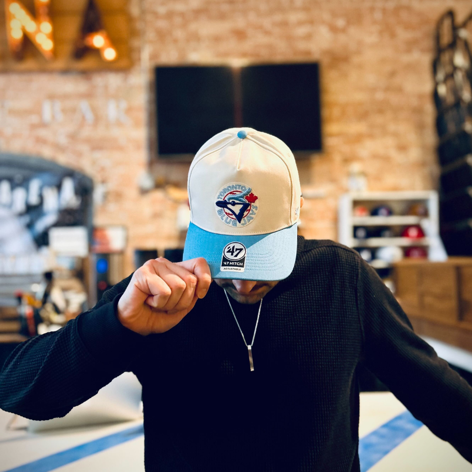 The evolution of our fan favourite Blue Jays Two Tone Hitch Hat by ‘47 Brand. This version features the franchise’s original logo paired with the addition of their 1991 All-Star Game logo as a side patch, both embroidered on a cream crown matched with a baby blue brim, button and strap. This exclusive cap won’t be around for long. Grab yours now!