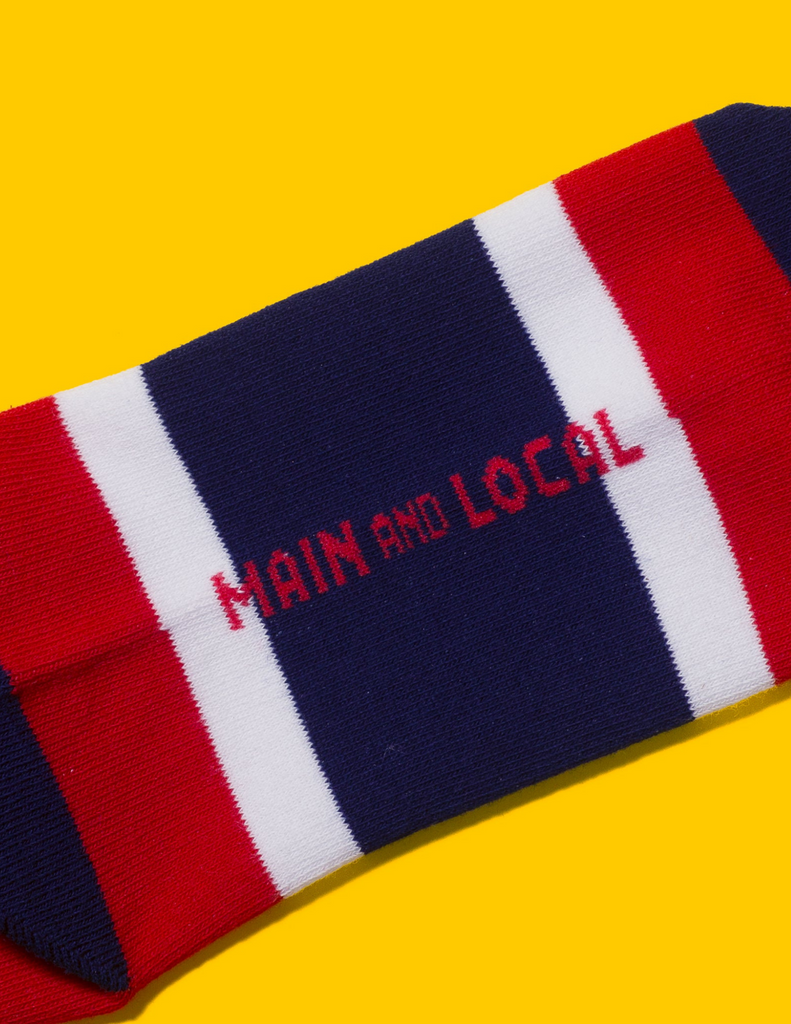 Show off your love for Montreal in these fun, red, white and navy city stripe socks!