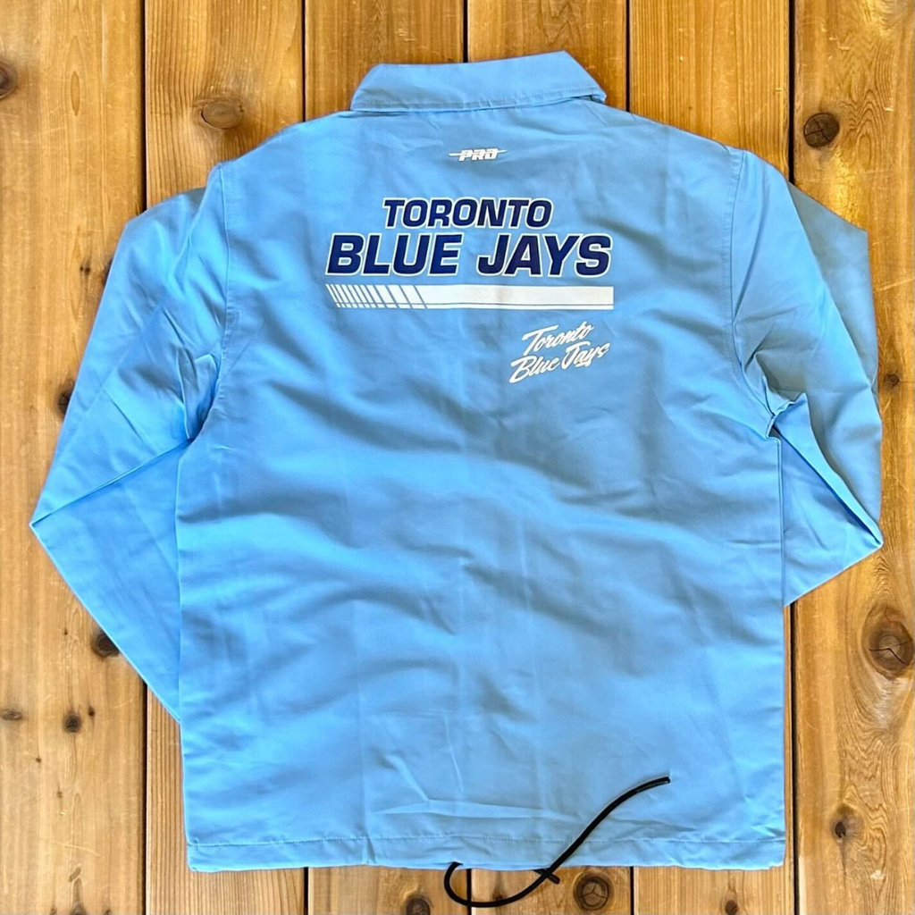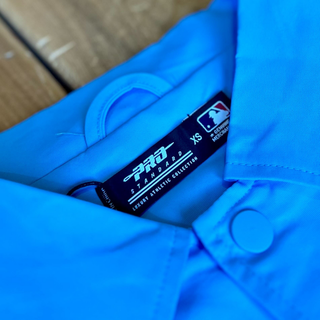 Step up your game in style with the Toronto Blue Jays MLB Women's Coaches Jacket. This powder blue jacket features your favorite team's fan patches and a lightweight windbreaker design. Perfect for any fan looking to stay warm and show their support.