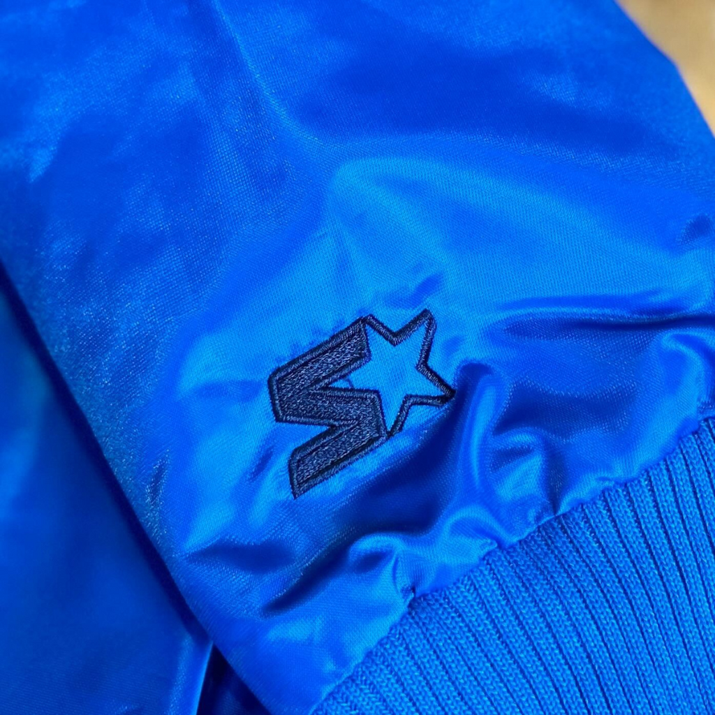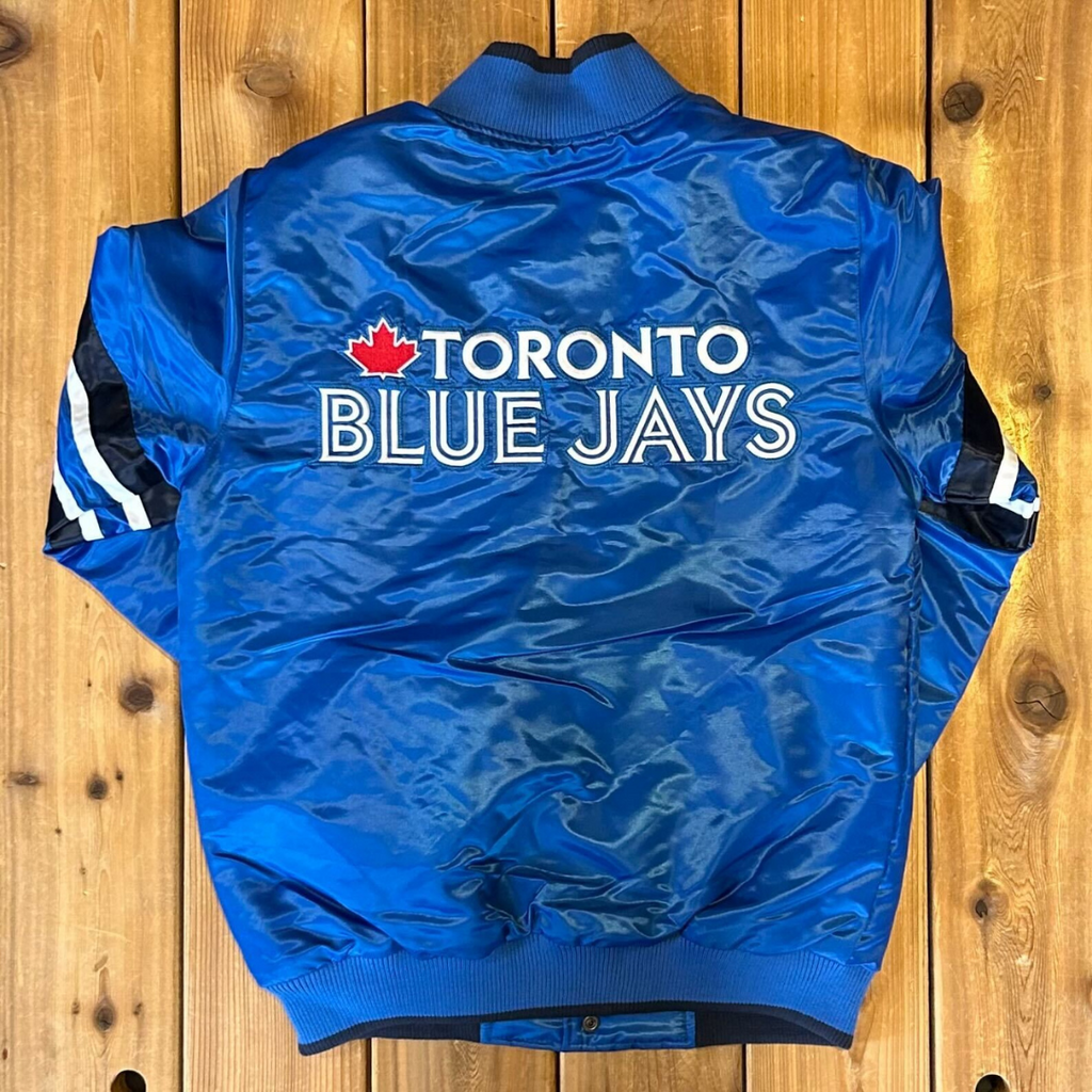 Gear up in style with this Toronto Blue Jays MLB Starter Satin Jacket! Made with sleek blue satin and featuring the iconic Jays logo, this jacket is perfect for any fan. Stay warm and show your team pride with this Starter jacket.