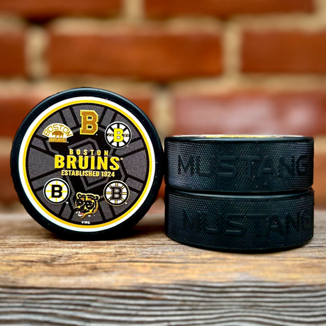 Capture the history of the Boston Bruins with this logo evolution commemorative puck! Perfect for the Bruins fan in your life. All Mustang Pucks are of the souvenir/collectible variety and NOT meant for game or recreational use.