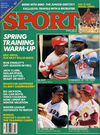 March 1987 SPORT Cover featuring Eric Davis of the Cincinnati Reds, Pedro Guerrero of LA Dodgers, Rogers Clemens of the Boston Red Sox and Mike Schmidt Philadelphia Phillies.