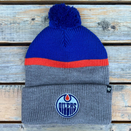 Stay warm and rep your favorite team in this Oilers pom knit toque.