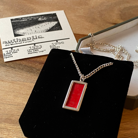 The perfect gift for the true Habs fan! This pendant is made with a piece from an authentic Montreal Forum seat (red).