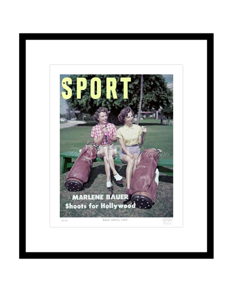 This print comes from the 2012 “Covers that Never Were” Collection, featuring female athletes on the SPORT covers that history never gave them. This cover features professional female golfers Marlene Bauer and Alice Bauer. This photo was taken for a SPORT magazine feature in 1950.