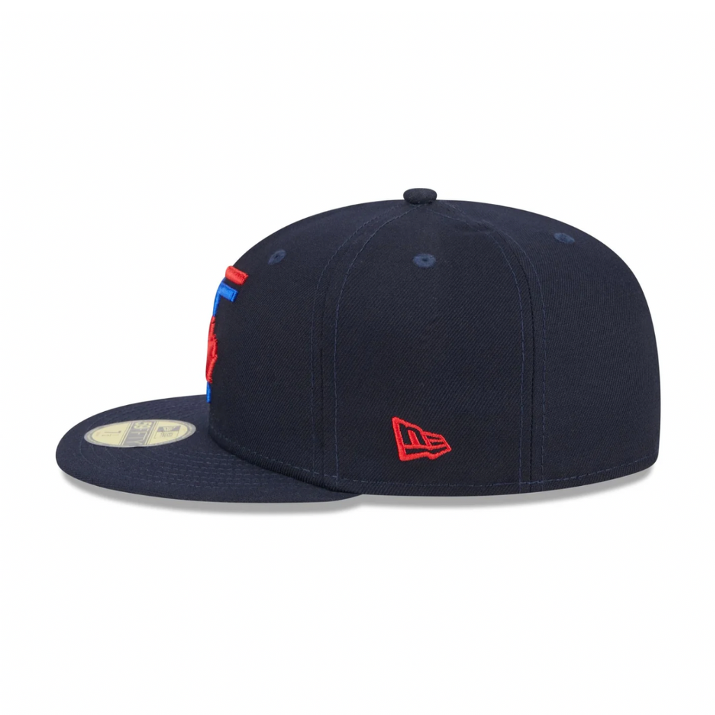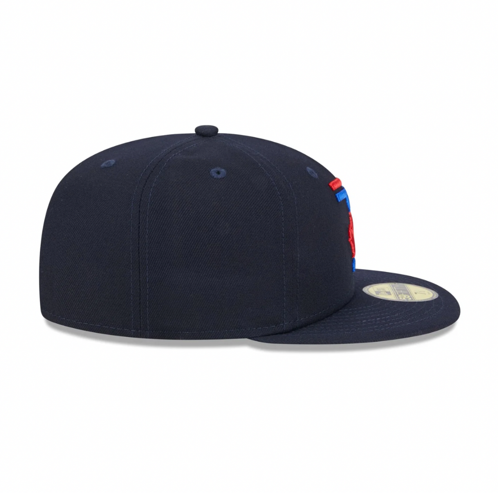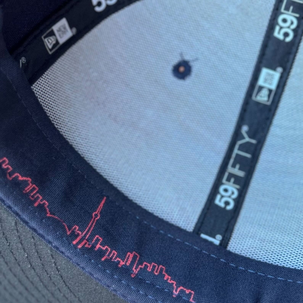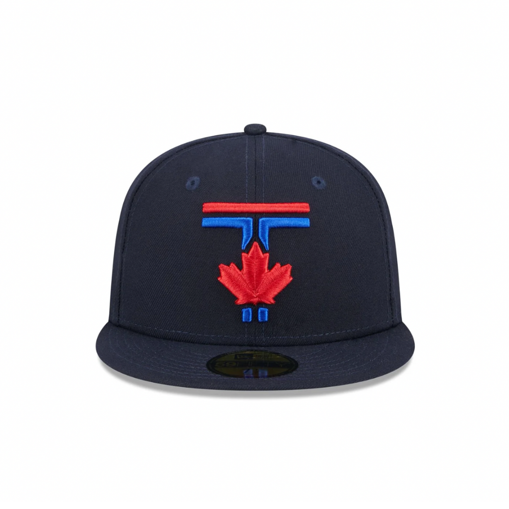 The Toronto Blue Jays City Connect 59FIFTY Fitted Cap draws originality from unique elements tied to Toronto and features an embroidered Blue Jays logo at the front panels and an MLB Batterman logo at the rear.