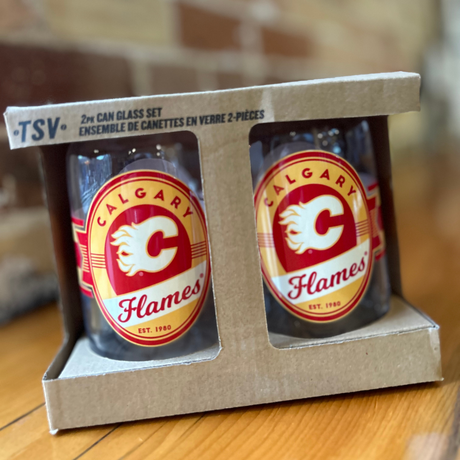 Calgary Flames Can Glass 2pk Set
