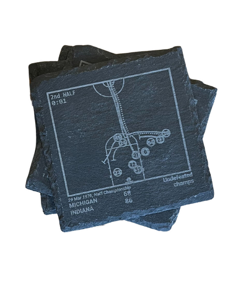 Relive four of the greatest moments in Indiana basketball history. Each set comes with four laser-etched coasters depicting these historic plays: