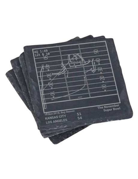 Relive four of the greatest moments in Rams football history. Each set comes with four laser-etched coasters depicting these historic plays: