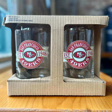 Represent your team with this San Francisco 49ers Can Glass 2pk Set! Perfect for game day or any occasion, these glasses feature the iconic 49ers logo and come in a set of 2. With this glassware set, you can show off your team spirit in style. Cheers to the 49ers!