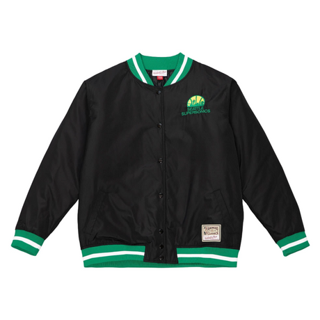 The perfect gift for the classic basketball fan! This womens puffer coat features the retro Supersonics logo embroidered on the front, with the team wordmark on the back, all on a classic red letterman style puffer.