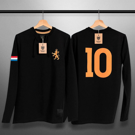 Netherlands Soccer-Inspired Retro with Laces Long Sleeve Shirt (Black)