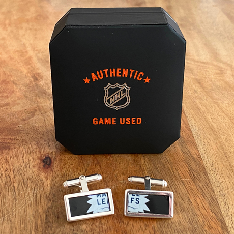 The perfect gift for the Leafs fan that has everything! Wear your Leafs pride on your sleeve with these unique cufflinks made from an authentic game-used Toronto Maple Leafs NHL puck. Featuring scratches and scuffs of game-played pucks.