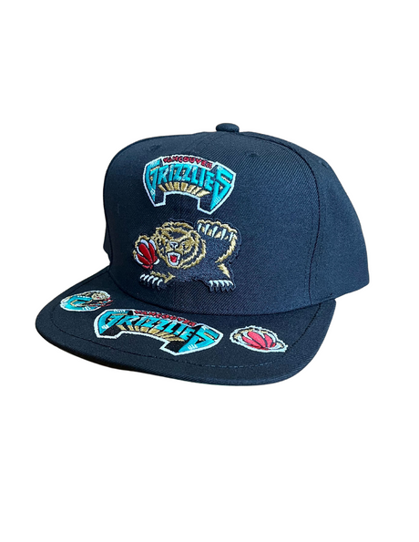 This Vancouver Grizzlies Mitchell & Ness snapback makes a statement with a front loaded brim—the hats boasts 5 embroidered Grizzlies logos.