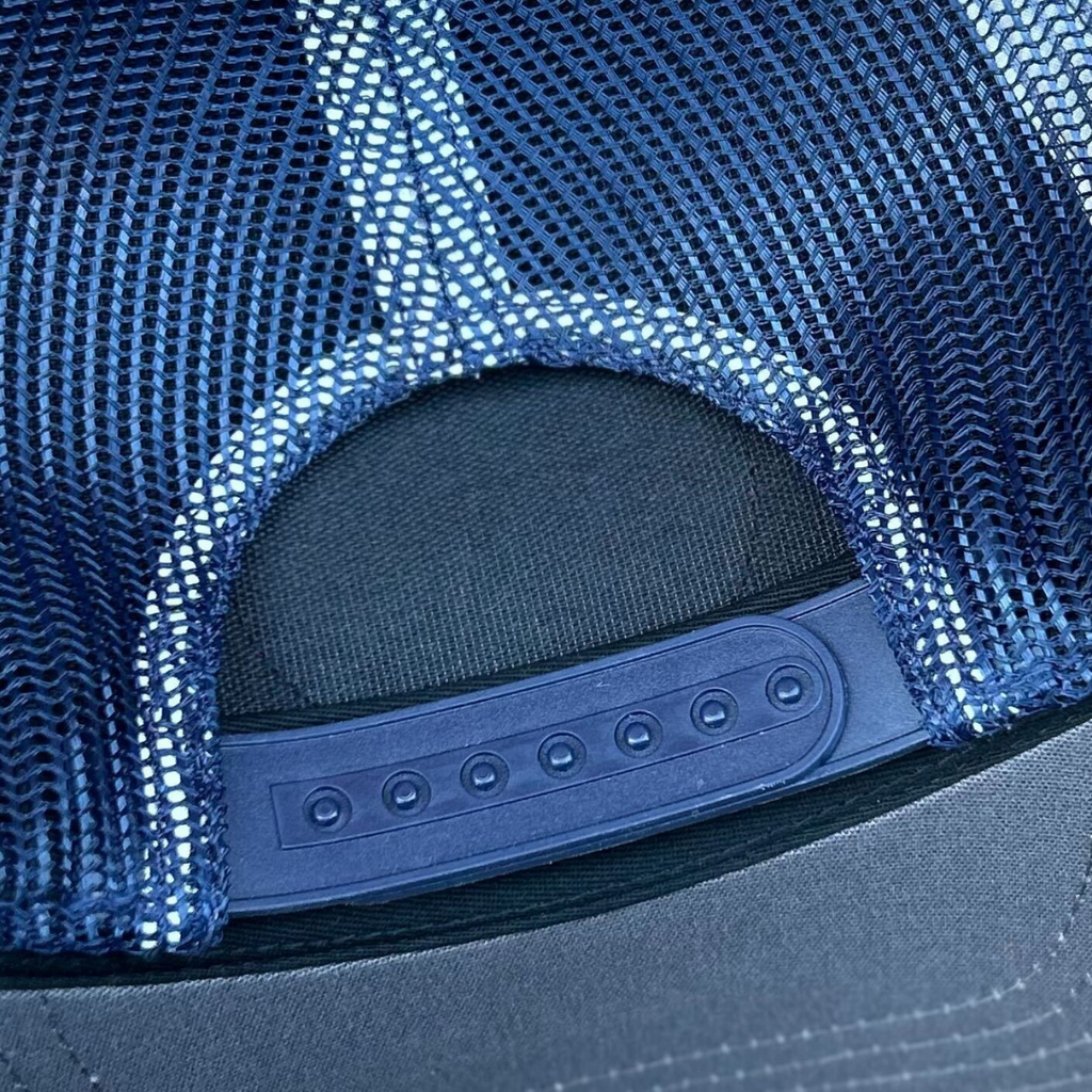 - Red front, navy mesh backing