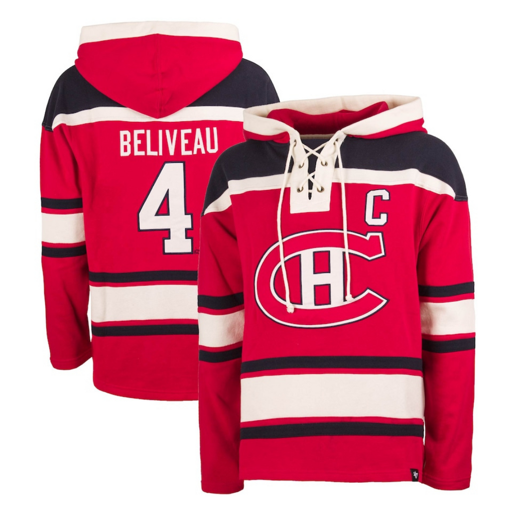 Look the part as one of the NHL's greatest players of all time - Jean Beliveau - with this warm and comfy jersey-inspired hoodie by '47 Brand! Featuring an embroidered crest of the heritage Montreal Canadiens logo, and Richard's #4. This part-jersey, part-hoody is perfect for watching or playing the game.