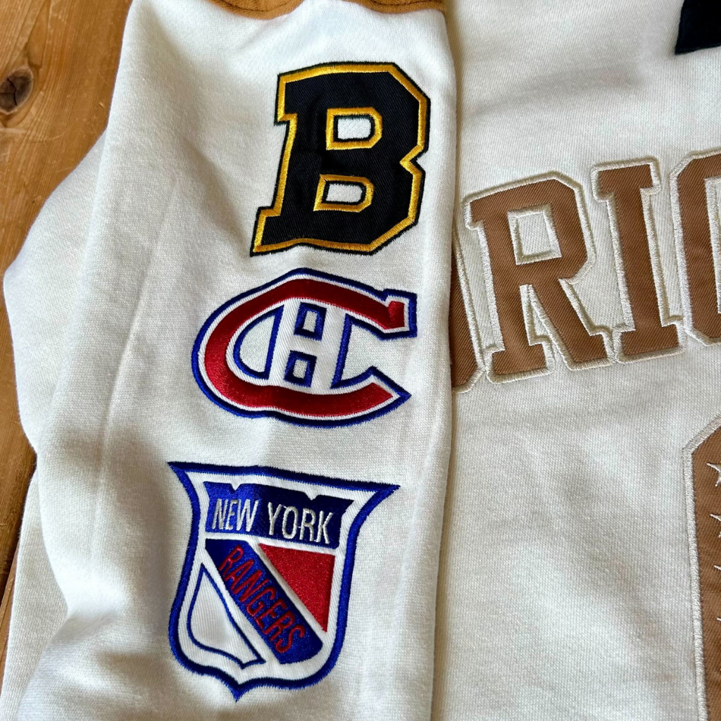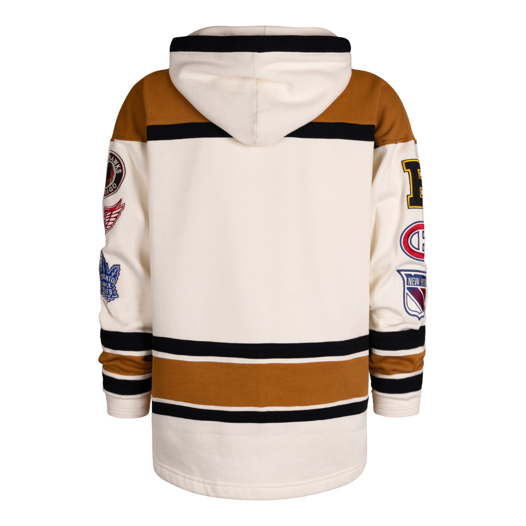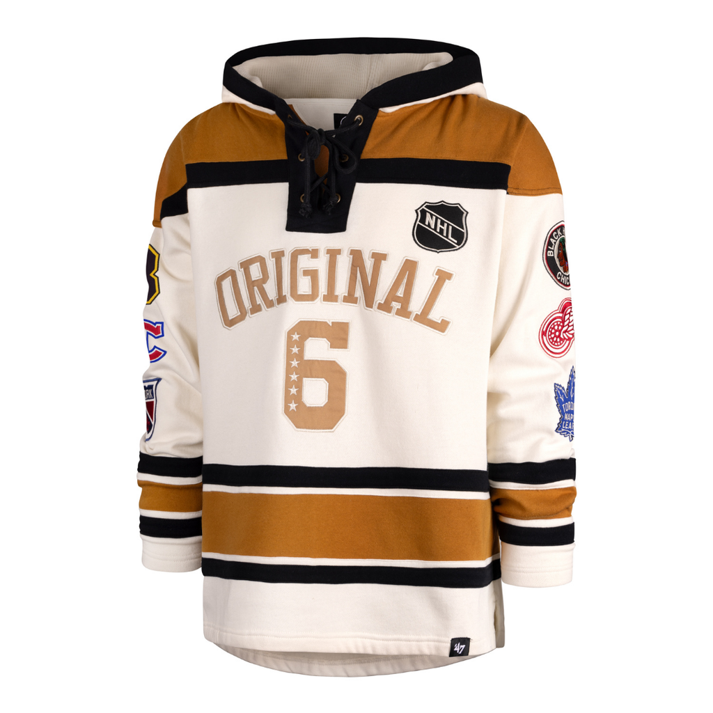 Stay cozy at the game, at home, or even at the rink in our Original Six lacer hoodie! Inspired by the hockey jerseys of the past and celebrating the most iconic era in NHL history!