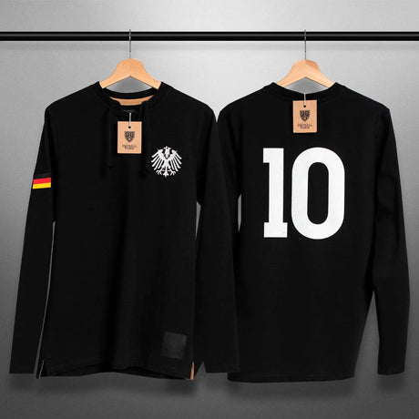 Germany Soccer-Inspired Retro with Laces Long Sleeve Shirt (Black)