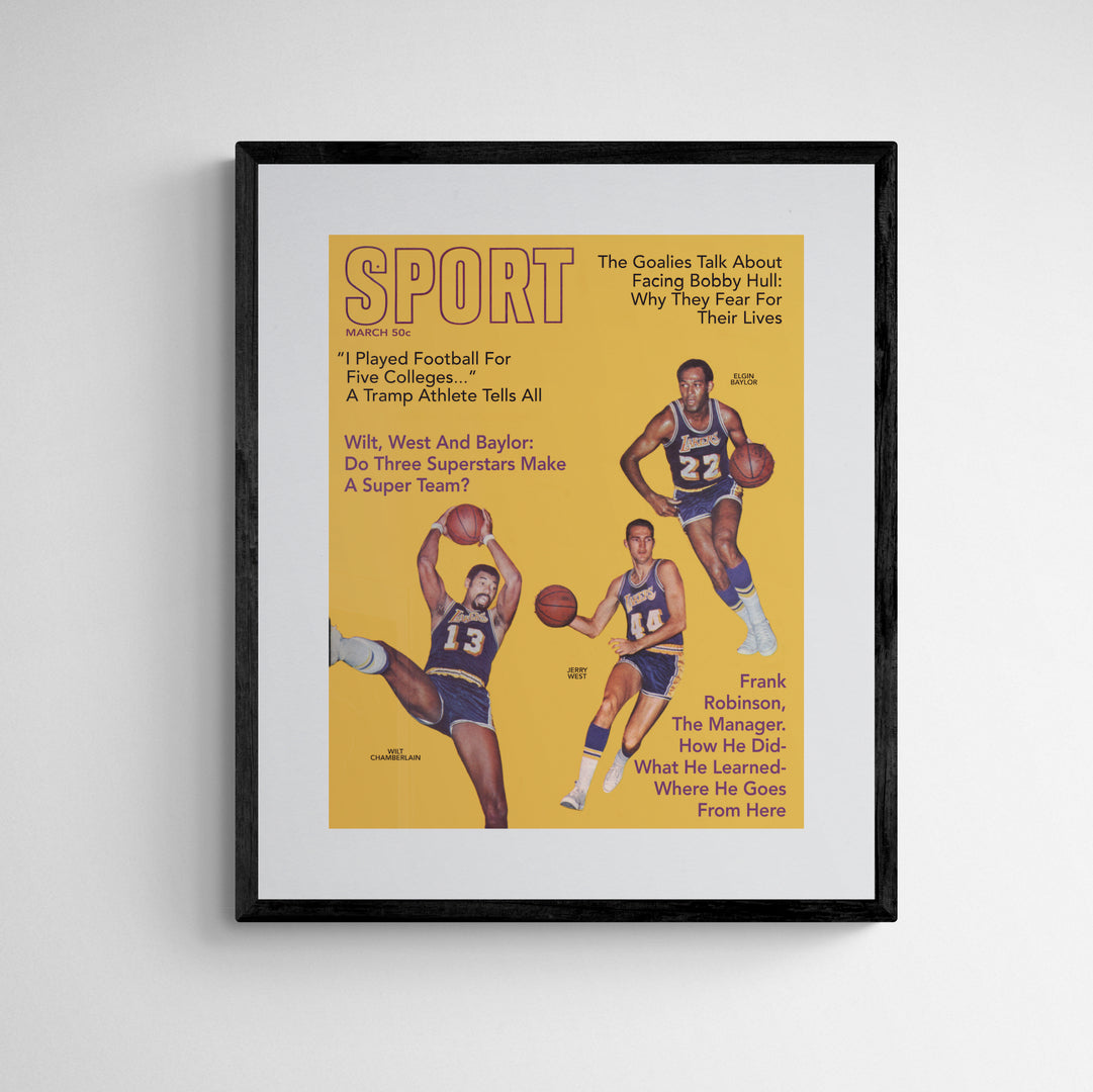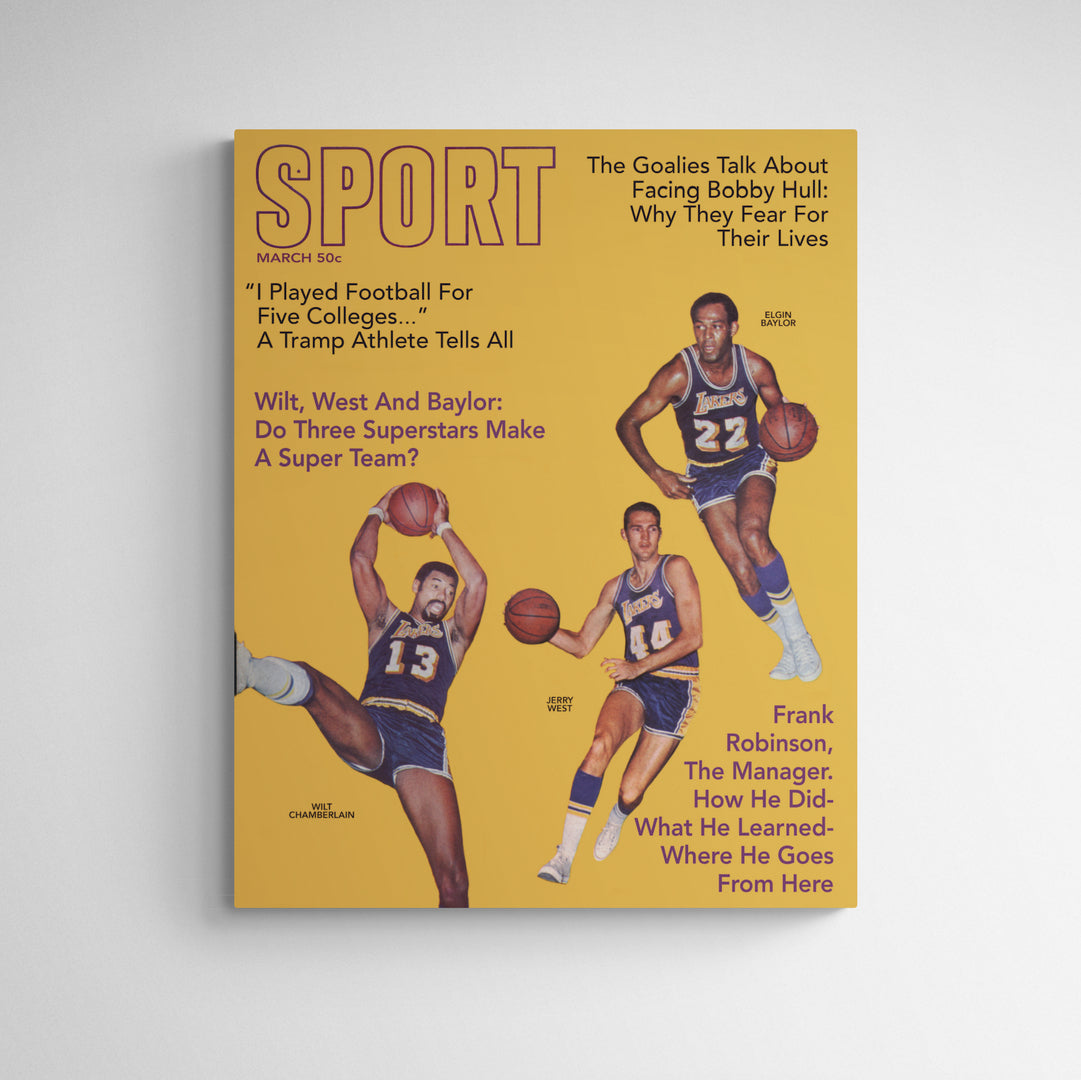 The March 1969 SPORT Cover features Los Angeles Lakers teammates Wilt Chamberlain, Jerry West and Elgin Baylor.