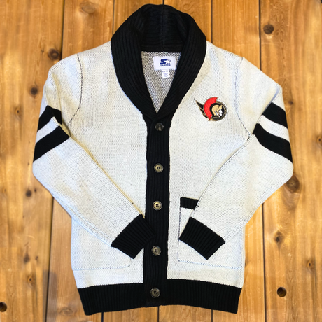 Inspired by the cardigans worn by in the past, this amazing Ottawa Senators cardigan features a shawl collar, pockets, buttons, with an embroidered logo and "Senators" knit into the back.