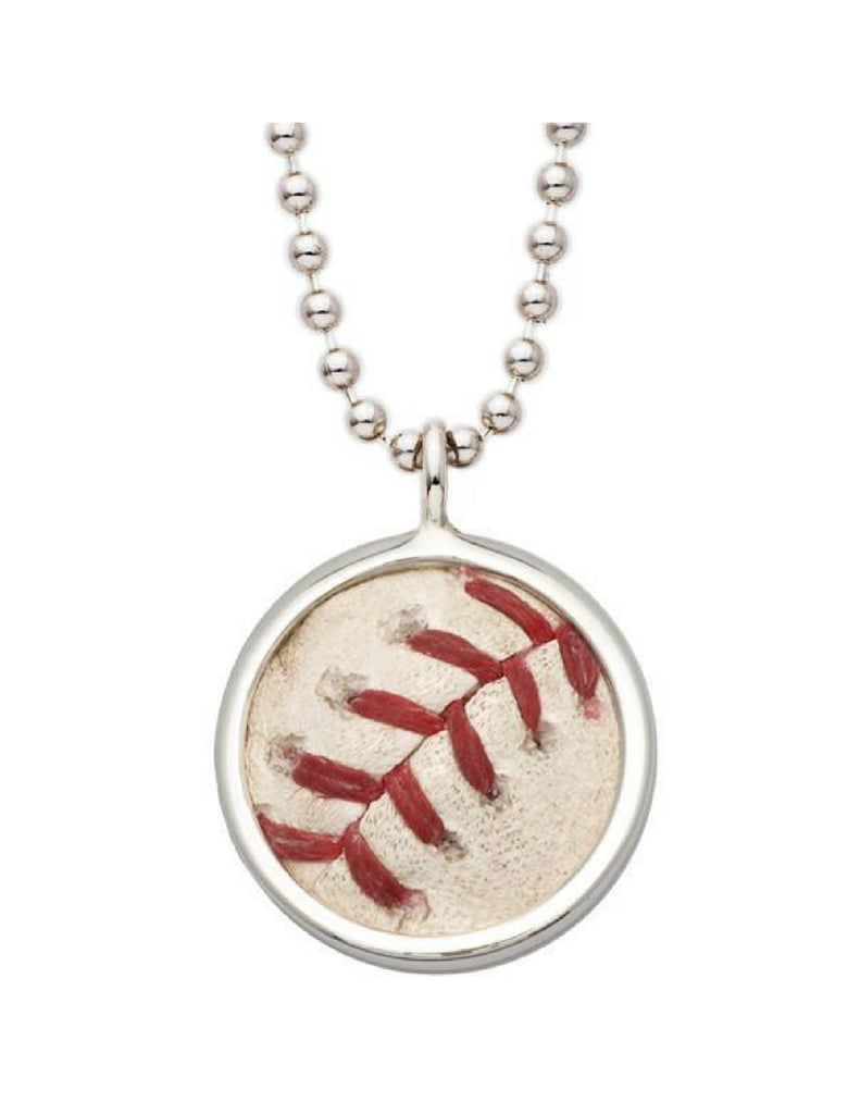 - Set in sterling silver, this pendant features the unmistakable red stitching and the little scratches and scuffs that let you know they have seen game play. Measures 7/8" in diameter and the back is hallmarked with their respective team name.