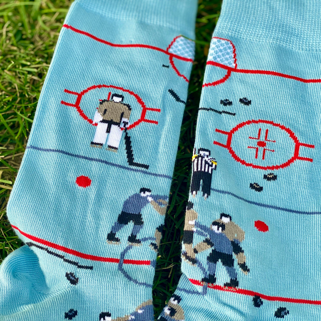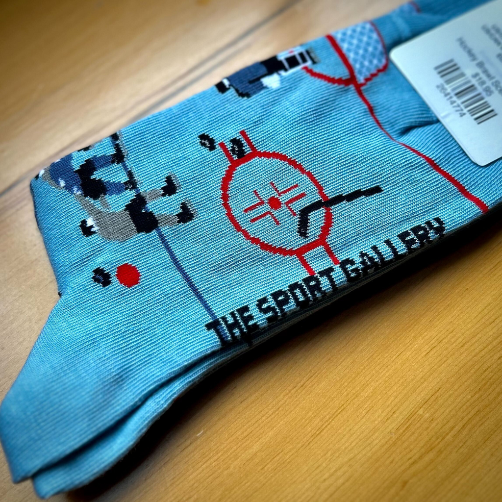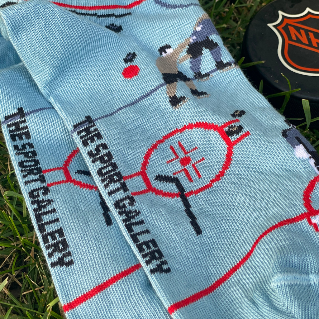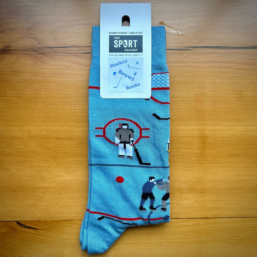 These socks draw inspiration from our fan favorite Good 'Ol Days print featuring the famous Original Six matchup hockey brawl. Designed for and available exclusively at The SPORT Gallery, these unique hockey socks will be a hit for the hockey fan on your list!