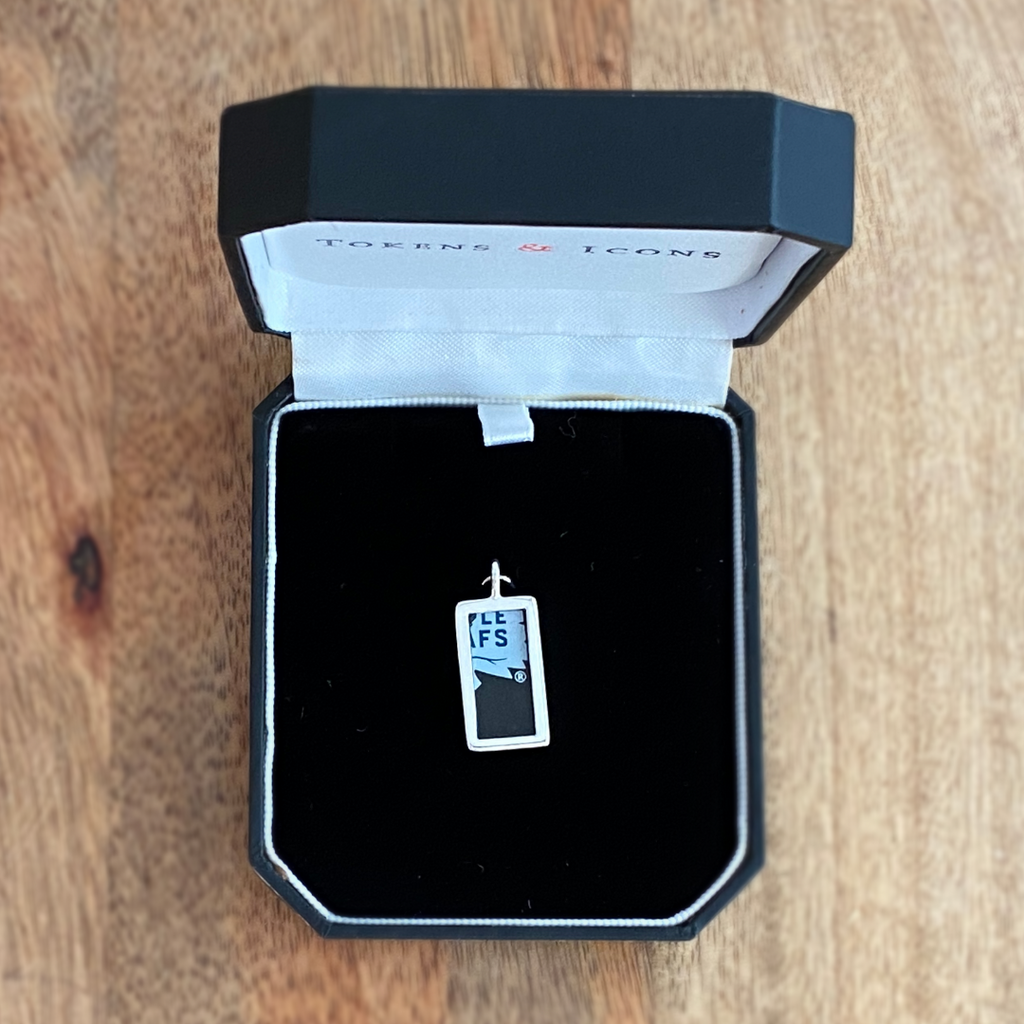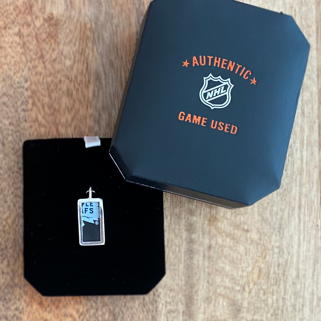 Keep your team close with this unique pendant featuring a piece from an officially game-used Toronto Maple Leafs puck set in a sterling silver pendant with the team name hallmarked on the back.