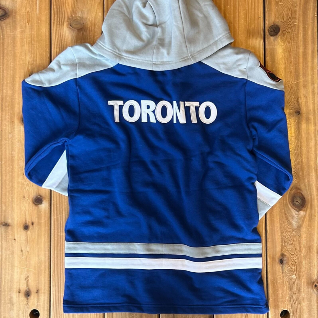 A SPORT Gallery Exclusive! Cheer on the Toronto Maple Leafs with this playful NHL Starter Jersey Hoodie! Showcasing your favourite team while keeping you warm, this hoodie is perfect for any fan. Go Leafs Go!