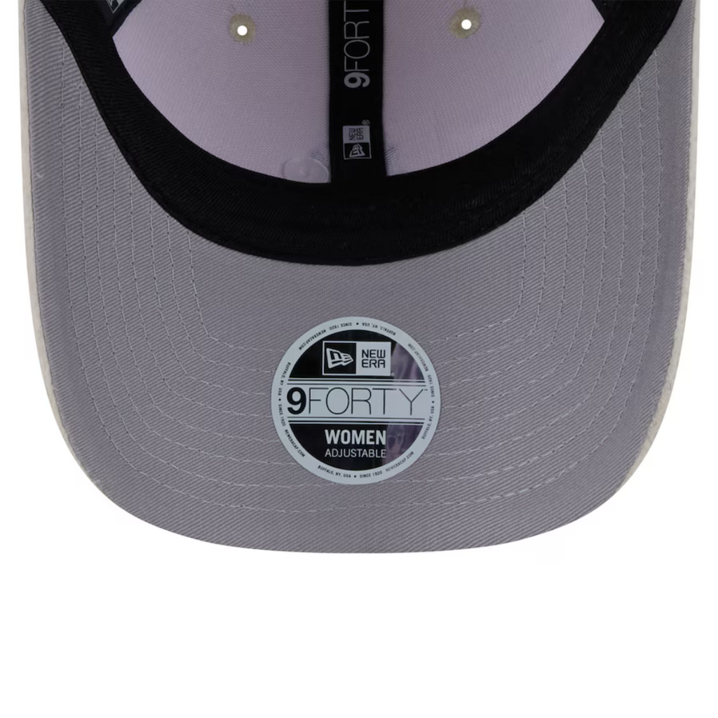 The New York Yankees Cozy Women's 9FORTY Adjustable Hat features an embroidered Yankees mini logo at the front panels with a gray undervisor and an adjustable D-Ring closure at the rear.
