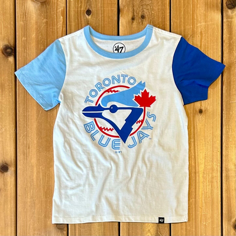 SPORT Gallery Exclusive—Introducing the Super Two Imprint Tee for young fans of the Toronto Blue Jays! This retro t-shirt is a must-have for any young baseball enthusiast, featuring the original Blue Jays logo.