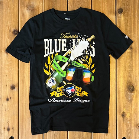 Celebrate the moment the Blue Jays clinched the ALCS in true clubhouse style. This Blue Jays ALCS Champions Tee captures the electric energy of the celebration — featuring a bold graphic with champagne sprays and victory goggles front and center.