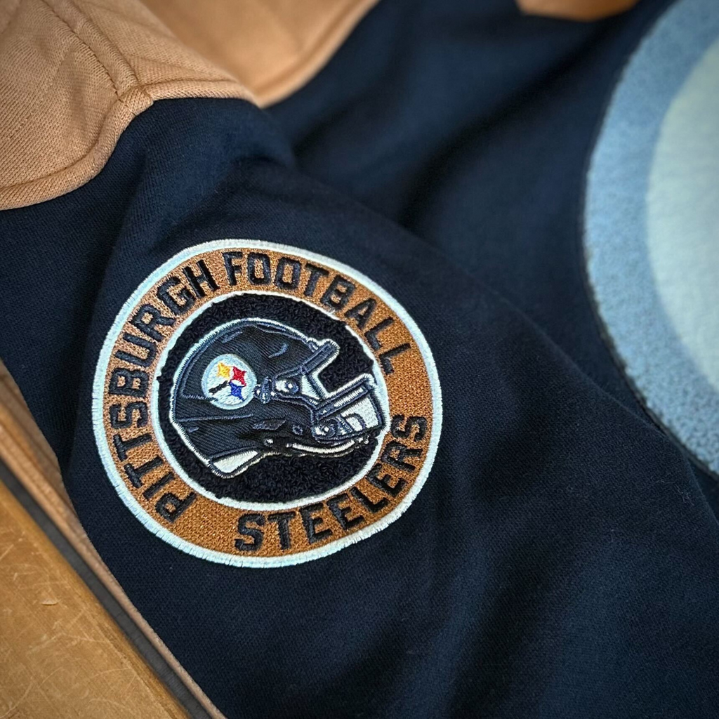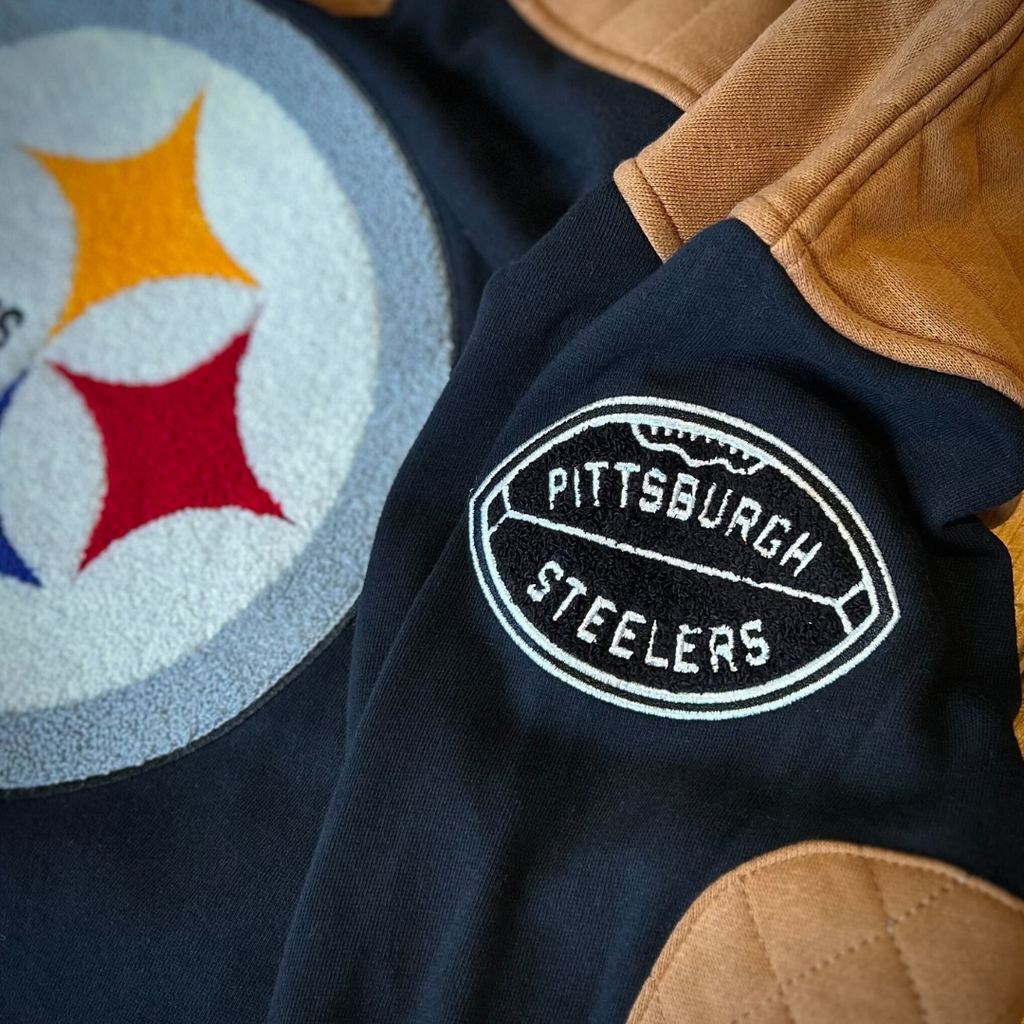 Show your team pride with vintage flair in the '47 Pittsburgh Steelers NFL Golden Age Wingback Lacer Hoodie. This hockey-inspired silhouette blends classic sports style with cozy comfort, featuring midweight fleece and a thermal-lined hood to keep you warm through every quarter. The bold twill appliqué Pittsburgh Steelers graphics on the body, shoulders, and sleeves make it clear who you're backing—whether you're tailgating, watching from home, or braving the stadium.