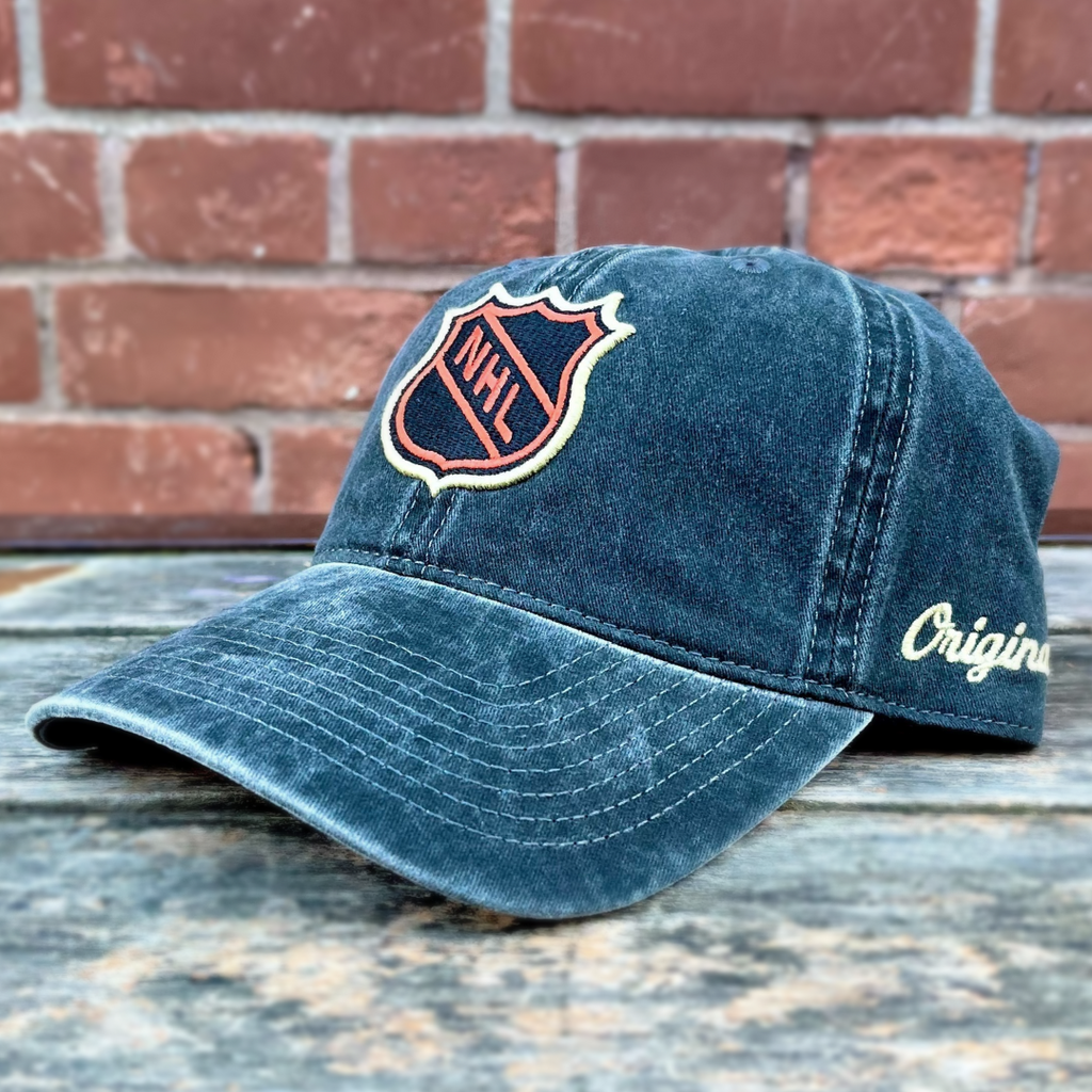 This NHL Original 6 cap from American Needle is business on top, party underneath. This seemingly simple cap features the NHL logo on the front, "Original 6" cursive stitching on the side, and hidden under the cap's brim are all the Original 6 logos in full colour.