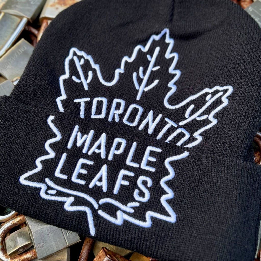 Shop our unique selection of exclusive officially-licensed NHL Toronto Maple Leafs hats, tees, sweaters, jerseys, and more! Every season we release new exclusive styles featuring the Leafs most unique historic logos, on classic, retro high-quality garments. Shop in-store in Toronto or shop online. Stand out from the crowd at Scotiabank Arena in our limited edition vintage-inspired hats, shirts, and jerseys. Or get the perfect gift for the hard-to-buy for Leafs fan who has everything.