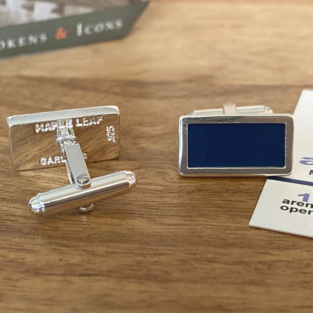 - Set in sterling silver with swivel findings, these cuff links feature the blue-painted wood of seats from which fans cheered for decades. Measures 13/16" x 7/16" and the back is hallmarked "Maple Leaf Gardens."