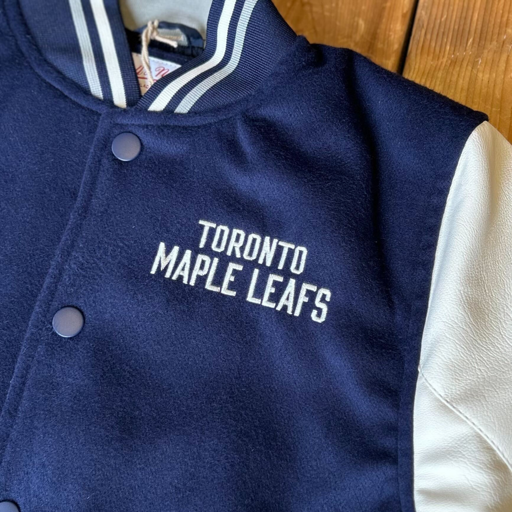 This heavyweight varsity jacket is the ultimate jacket for the young Leafs fan!