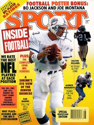 August 1990 SPORT Cover featuring Dan Marino of the Miami Dolphins, Dalton Hilliard of the New Orleans Saints and Alonzo Highsmith of the Dallas Cowboys.
