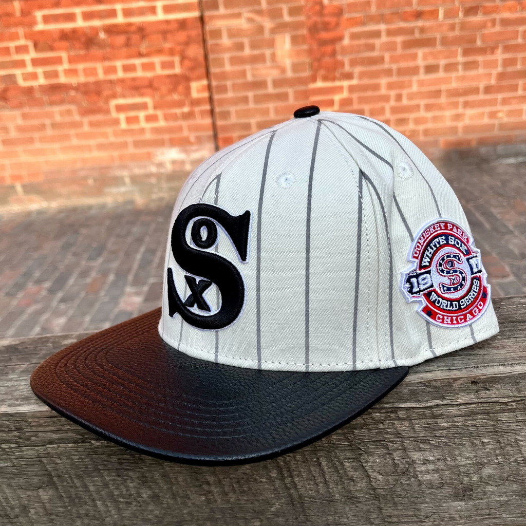 Chicago White Sox MLB Pinstripe Retro Wool Strapback Hat (Eggshell/Grey/Black)