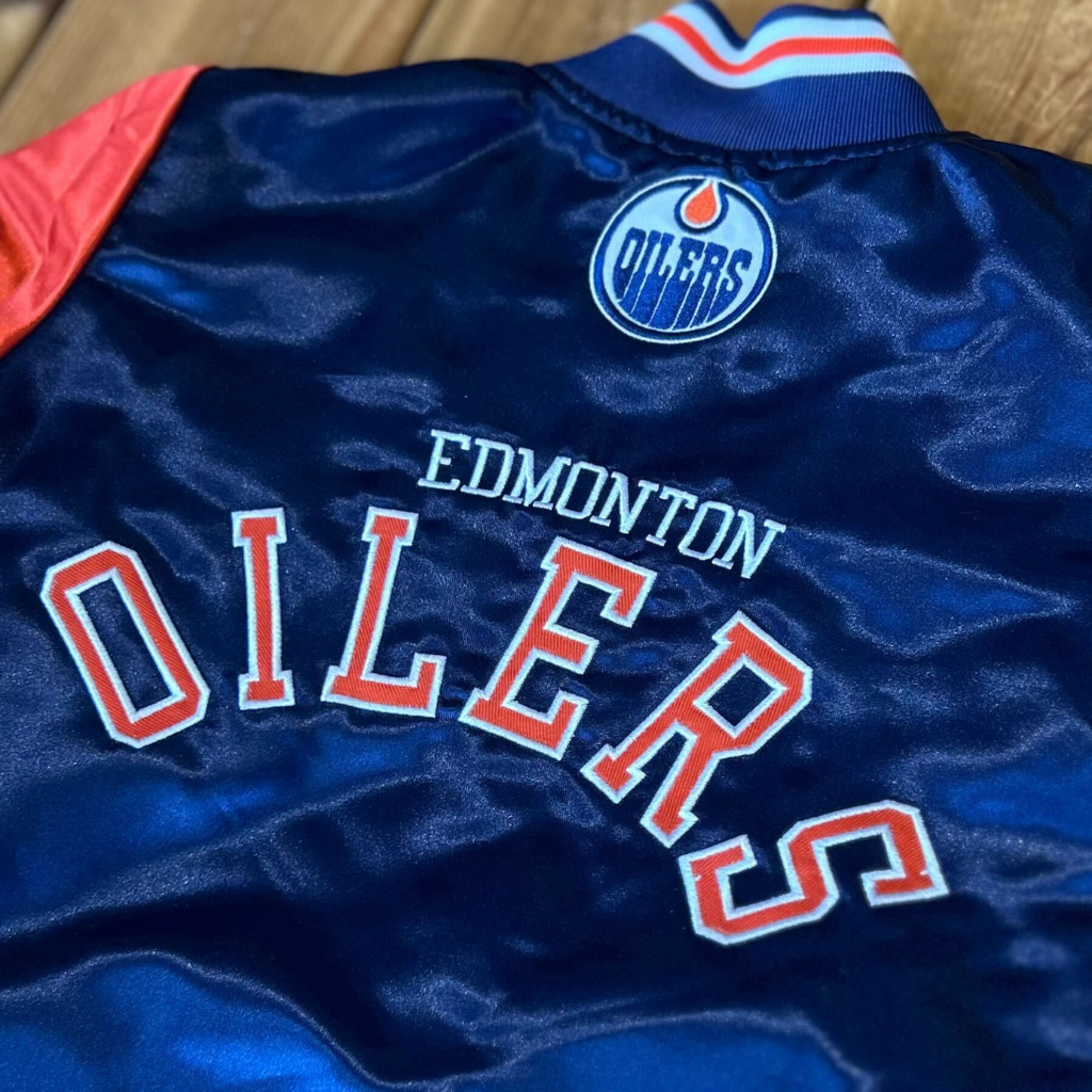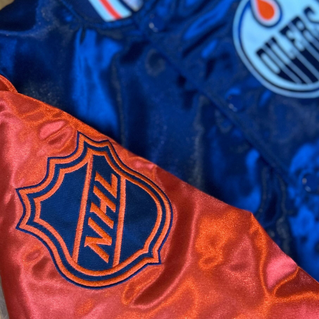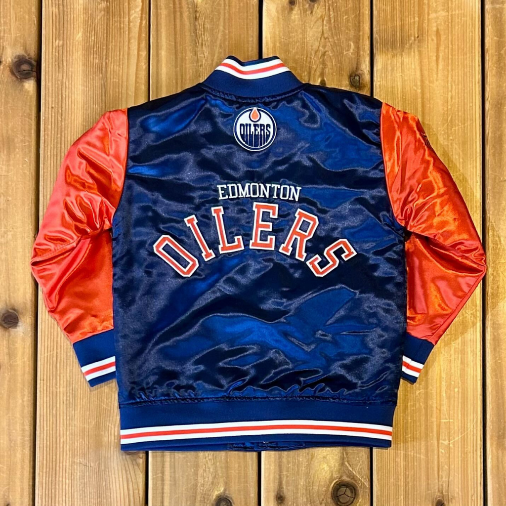 Kids and teens can rep the home team in style in this awesome Edmonton Oilers satin jacket by Mitchell & Ness!