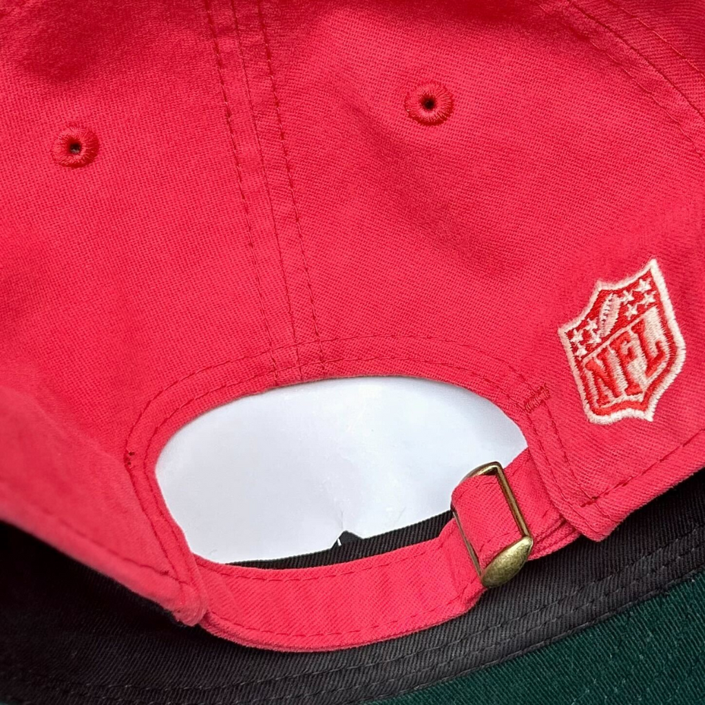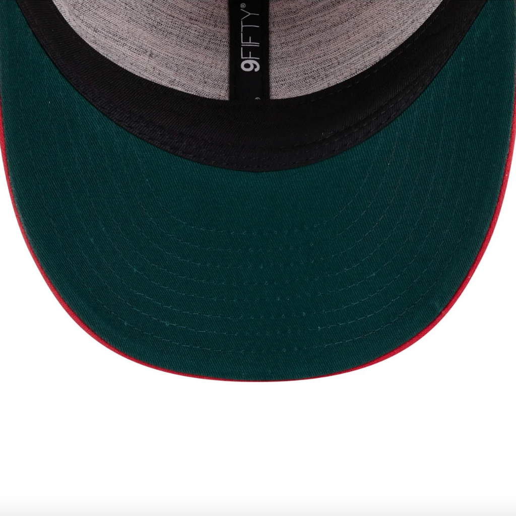 The Kansas City Chiefs Canvas Felt Retro Crown 9FIFTY Adjustable Cap features an embroidered Chiefs logo at the front panels with a matching NFL Shield at the right rear. Additional details include an adjustable D-Ring closure at the rear and a green undervisor.