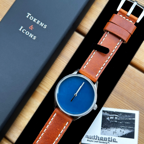Never be late to the game with this watch crafted from an authentic seat from Maple Leaf Gardens. Featuring the iconic blue paint... and plenty of story.
