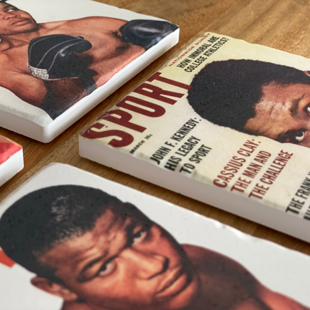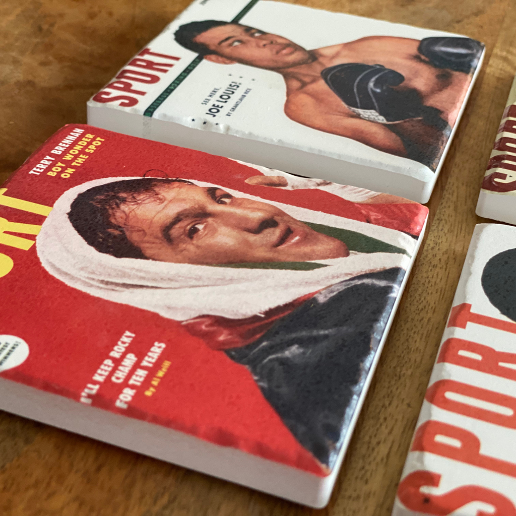 - 4 coasters in a set, each with a unique vintage SPORT magazine cover