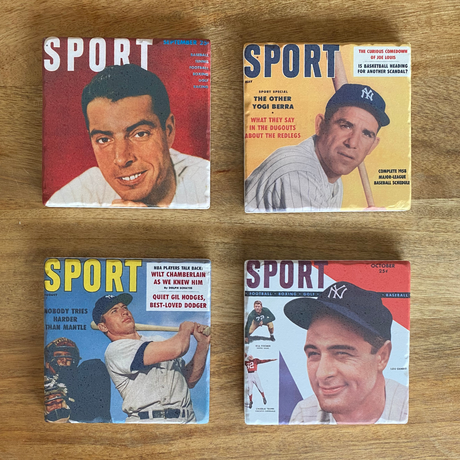 Before there was Sports Illustrated there was SPORT magazine—the first general-interests monthly sports magazine, launched in 1946 and best remembered for its exquisite color photography and classic prose. Step back in time with this unique set of vintage SPORT magazine cover coasters. Each set comes with 4 different vintage NY Baseball SPORT magazine covers. These coasters are the perfect gift for any classic sport fan! Say goodbye to those water rings on your table!