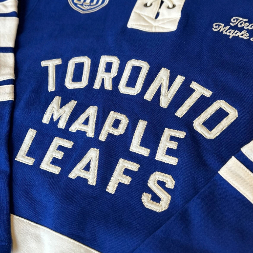 Our best-selling hoody is back, and at a whole new level! The Old Time Hockey Toronto Maple Leafs lacer hoody features beautiful embroidered details on the front and sleeves.