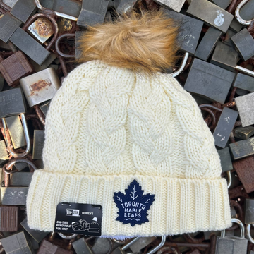 Toronto Maple Leafs NHL New Era Cream Women's Knit Fur Pom Toque